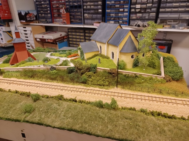 Kyrkan byggdes ju för länge sen, likaså modellen av den om än inte lika länge sen, att den skulle hamna på en modul var däremot ett sent påfund. När så tankarna på en modul dök upp insågs rätt kvickt att jag behövde fixa till klocktornet också. En liten rysare med huvudsakligen Evergreen-plast som ingrediens.
